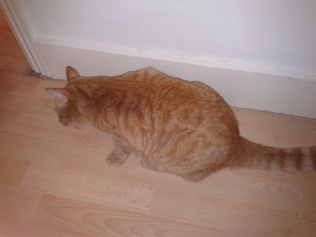 The last three months or so we've been getting regular visits from a smallish constantly purring ginger cat. At first it was just curious and would just run up the stairs and have a look around the flat and leave, then gradually it would come and ask for stroking and then leave. Last night however it wouldn't leave (the rain?) so we were wondering if anybody knows who this cat might belong to, so we could take it home in case the owners worry. We never feed it, but it seems to just want company as it always follows us home, and never stays in a room alone (making it difficult to go to the loo ) Any ideas?