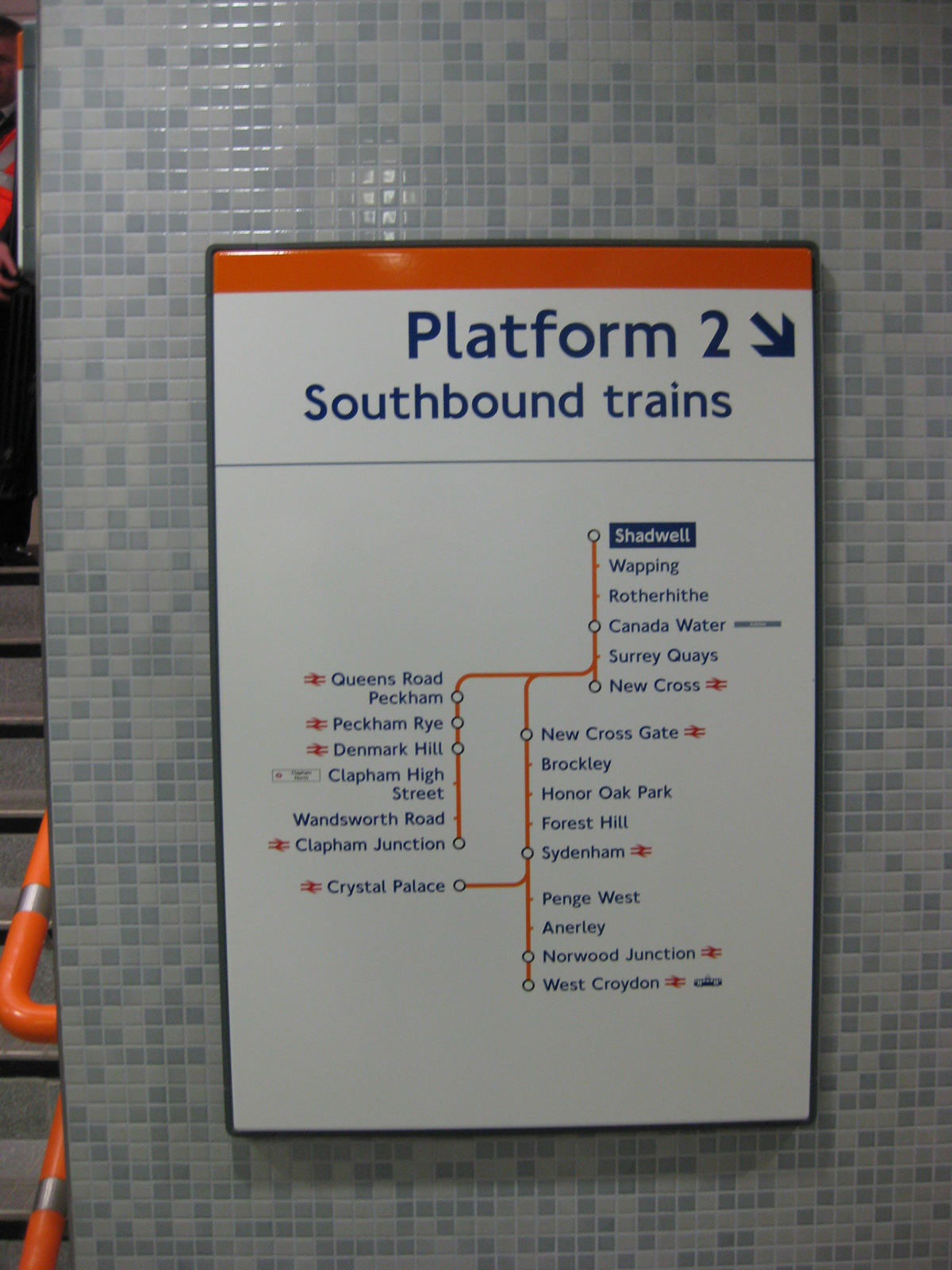 In any instance, I expect LOROL will cover the stations not served by the ELL at launch until 2012. (Feb 2011 for the northern extension to Highbury and Islington for NLL, Victoria Line and FCC services to Moorgate) with white cover on platform signs. This way, they don't have to buy new signs in two years time.