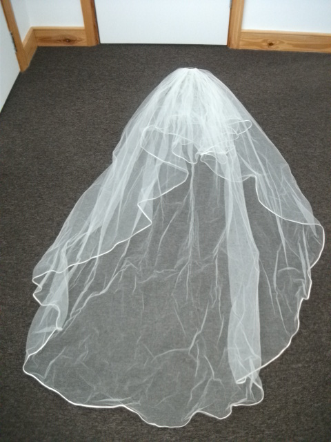 Also I have bought in the same shop the veil and a scarf to put around the shoulders, label has been cut out. The veil is app. 1.60m long and it is from