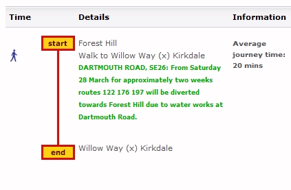 Forest Hill station to Willow Way = 20 mins