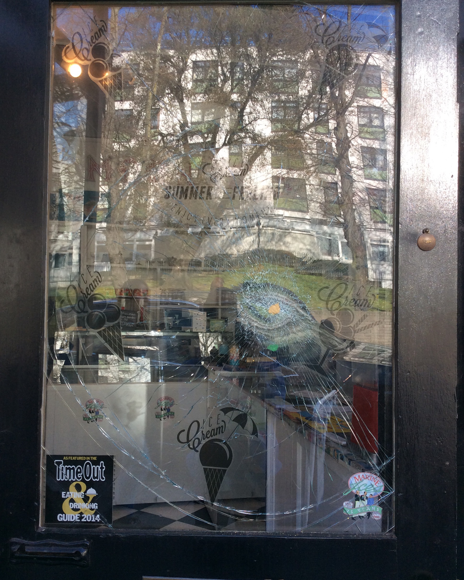 I came to open up this morning to find my shop door window shattered. Thankfully I have anti-terrorist shatterproof film on all my windows so the window didn't smash. If anyone saw anything between 6pm last night (Wed 30/3) & 10am this morning please come and tell me so I can pass all info on to the police dealing with this.