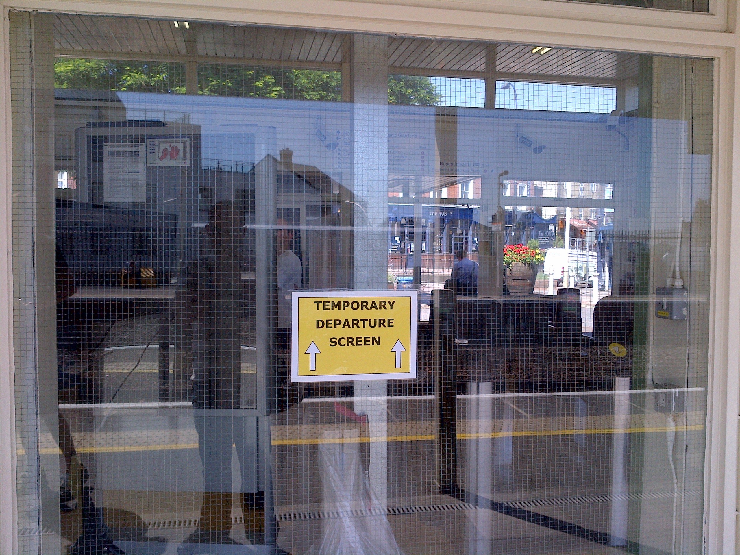 The temporary departure board is there but is passing indistinct....its also mostly out of sync with the main board in the ticket acquisition space (sadly it doesn't warrant being called a hall).