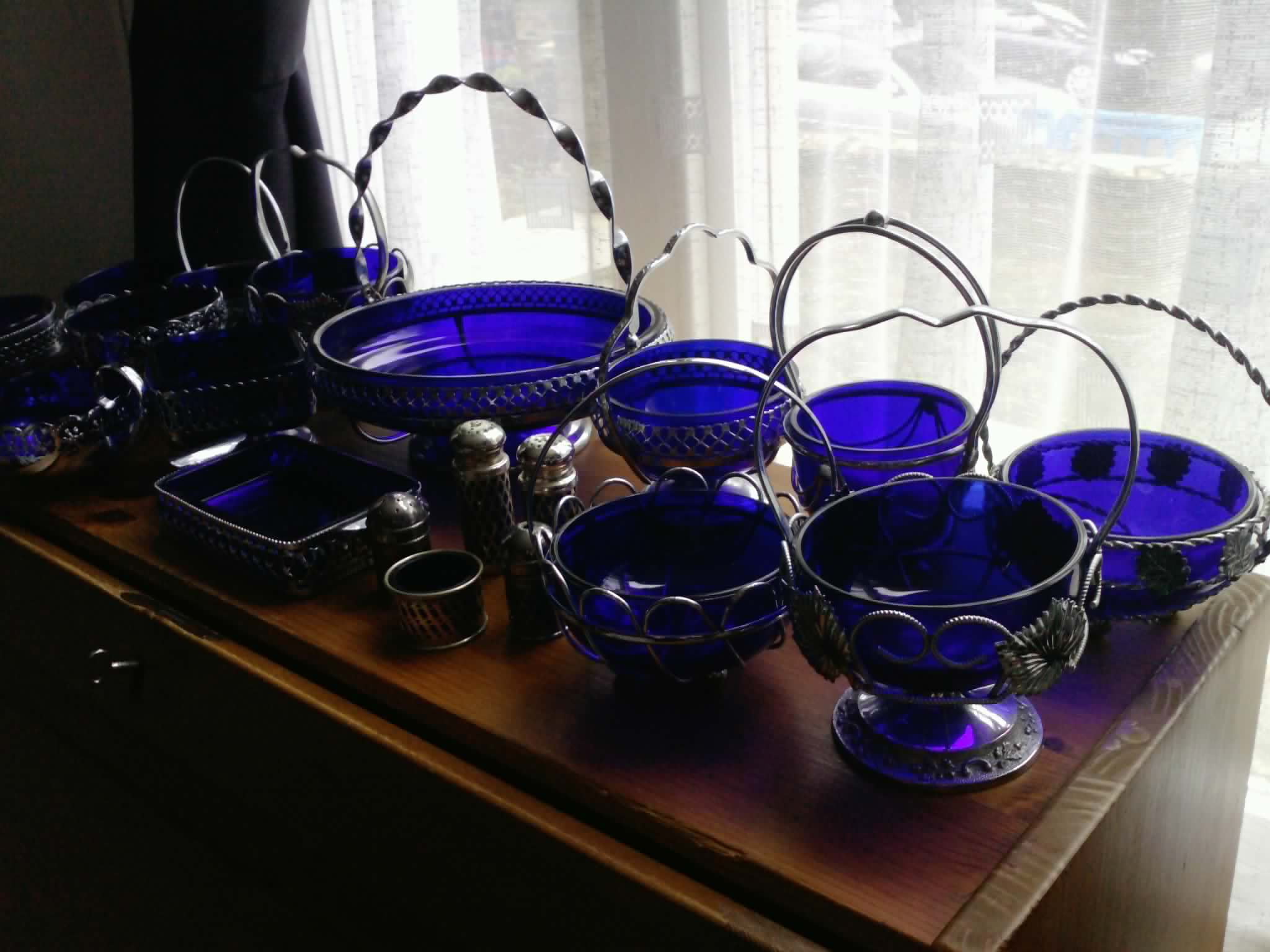 Bristol blue and silver plated bowls etc