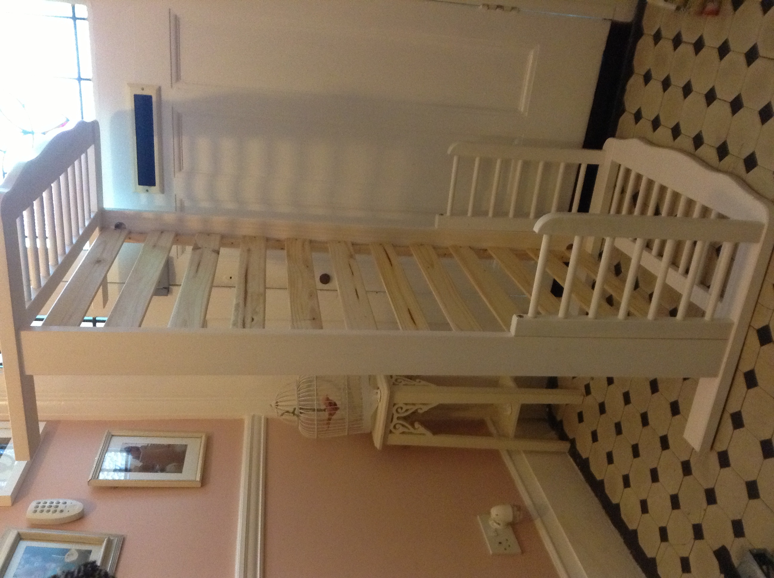 White wooden toddler bed for sale - £10