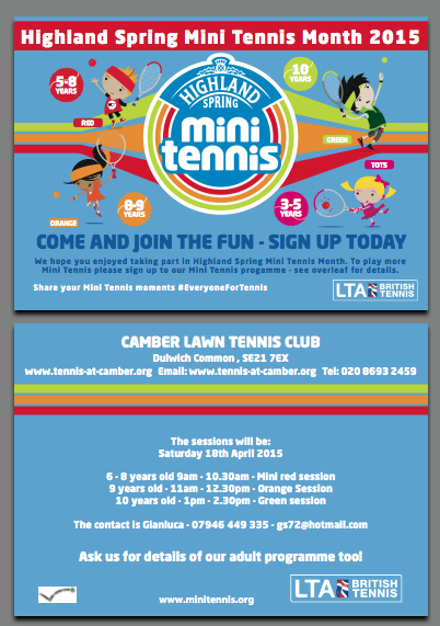 Camber LTC on Dulwich Common is hosting a free event as part of 'LTA Highland Spring Mini Tennis Month', introduce new junior players and parents to the beautiful game of tennis.