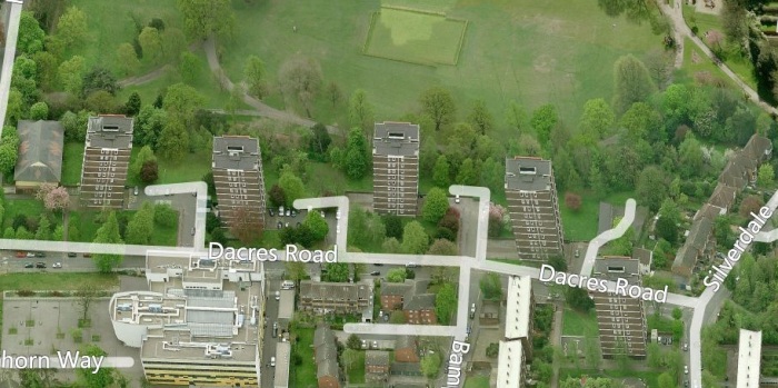 When totally zoomed in, we can see our new shed laid out on the lawn awaiting erection (which means we can date when the photo was taken fairly accuratel), but one level up from that view there is no shed on the lawn!!