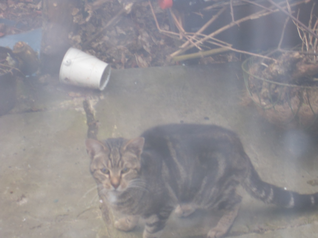 Just to report a new and completely different tabby has appeared today and is cold, hungry but unaccountably friendly - as if it thinks this is its home. It was sitting on the garden bench and seems like in no hurry to leave. We've fed it and if it still there after I return from work, will put a photo up. If you think your cat is missing, please let me know.